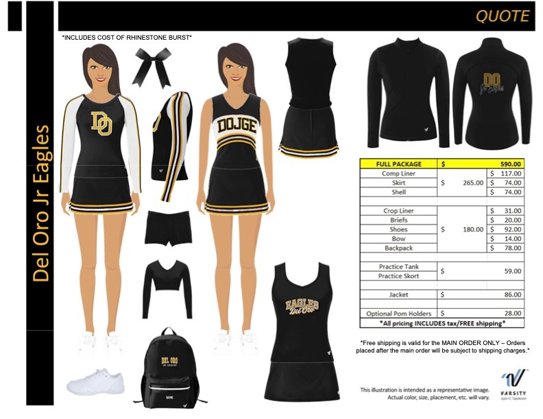 Uniforms: full package $590; with optional pom holders $618